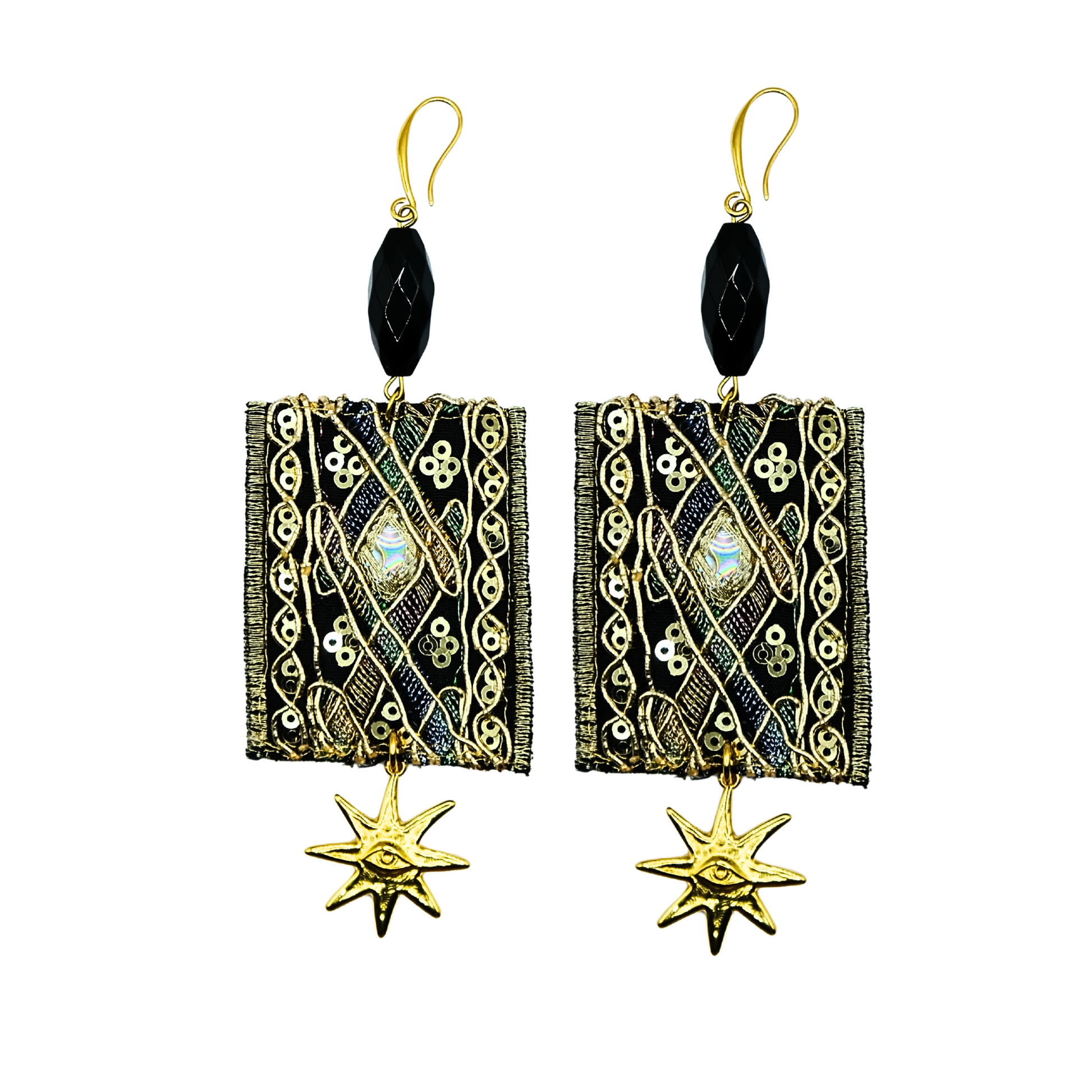 ※ handmade earrings from fabric decorated with crystal beads and 24K gold plated motifs