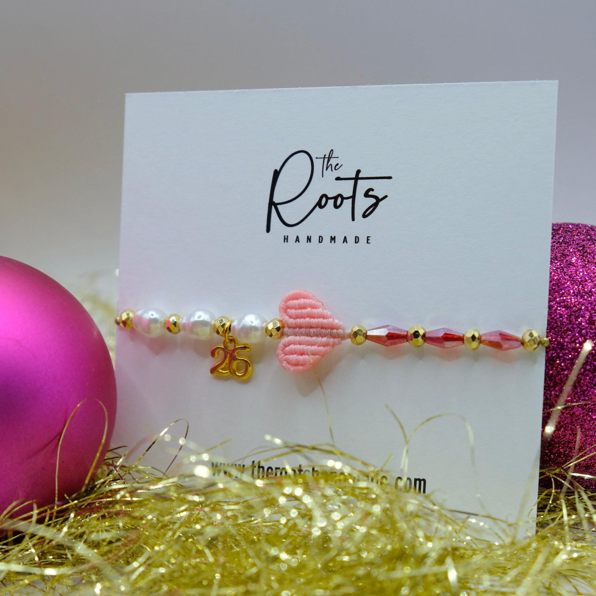 ※ handmade charm bracelet with macrame heart for 2026 decorated with metallic motif and beads
